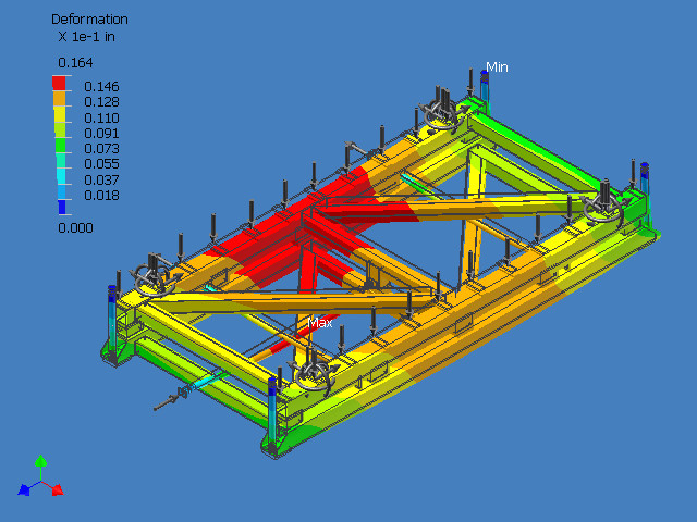 An image from the stress analyses report showing overall deformation of the metric portion of the balance while under maximum loading.